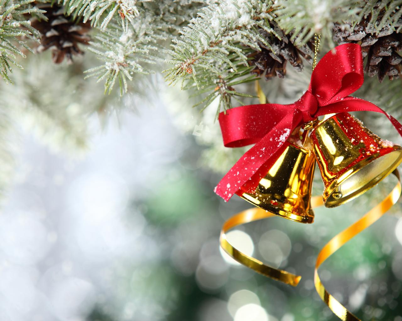 Wallpaper Bells with a red bow