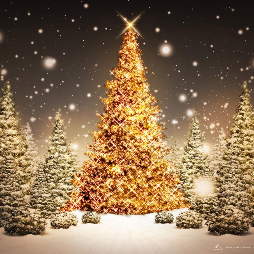 Wallpaper Golden tree in the woods on New Year`s Eve 2015