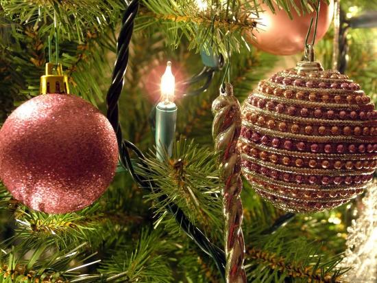 Wallpaper Gift, Red ribbon, A glass of champagne, Balls, Candles , Christmas tree, Santa Claus, Christmas toys, Christmas garland