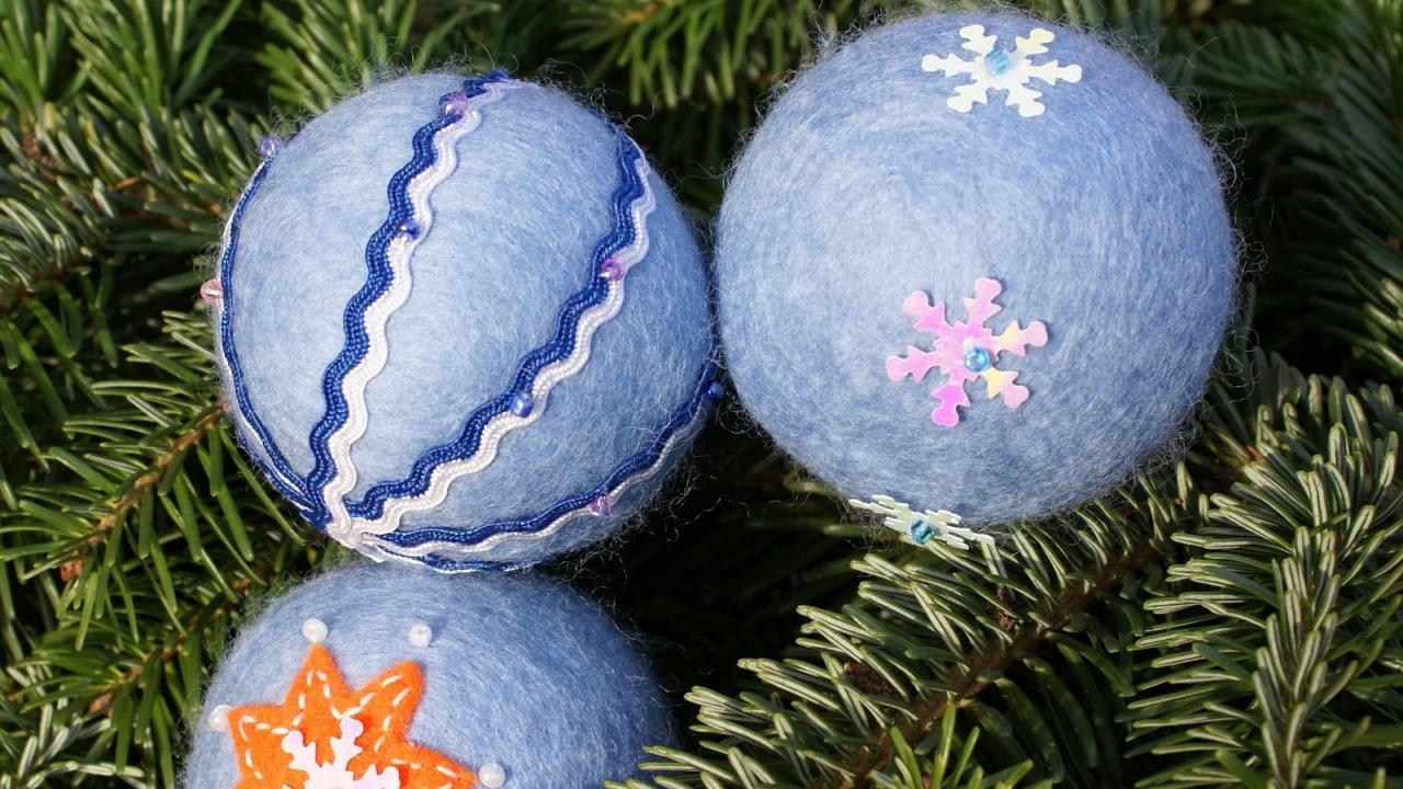 Wallpaper Blue Christmas tree balls on a gray background on Christmas