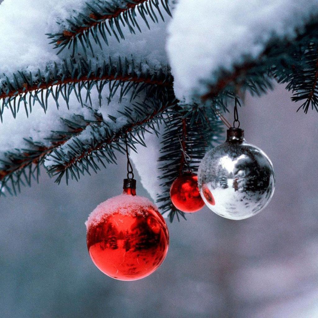 Wallpaper Snow, Christmas tree, ball, Christmas toys