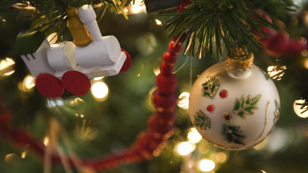 Wallpaper Arrangement of Christmas toys and needles on Christmas