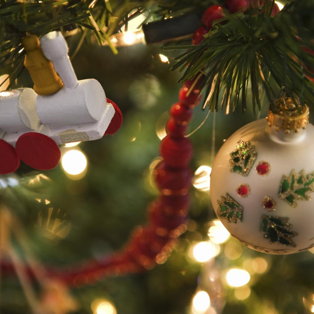 Wallpaper Arrangement of Christmas toys and needles on Christmas