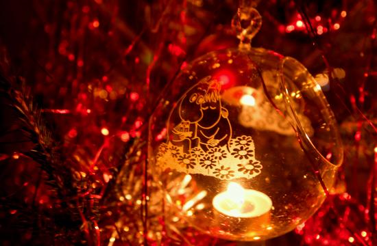 Wallpaper Gift, Red ribbon, A glass of champagne, Balls, Candles , Christmas tree, Santa Claus, Christmas toys, Christmas garland