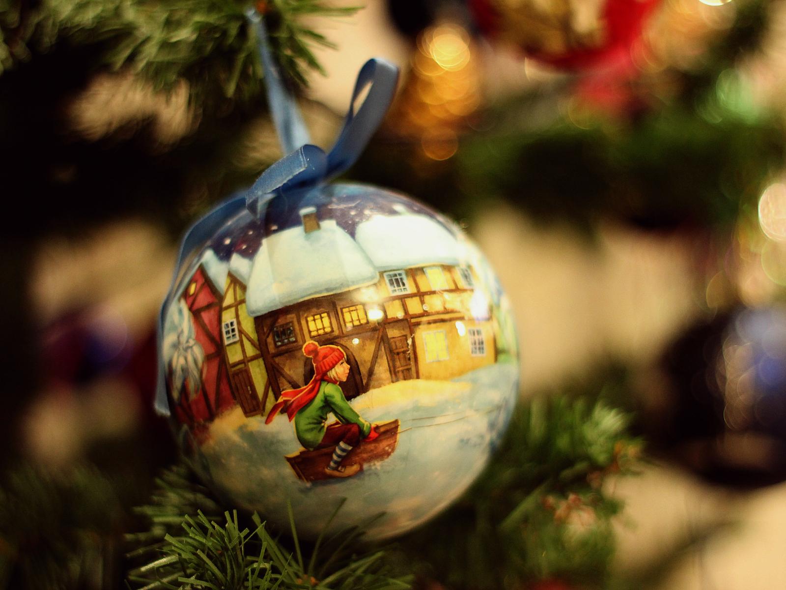 Wallpaper Snow, Christmas tree, ball, Christmas toys