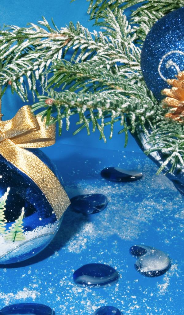 Wallpaper Multi-colored Christmas toys on Christmas, blue background