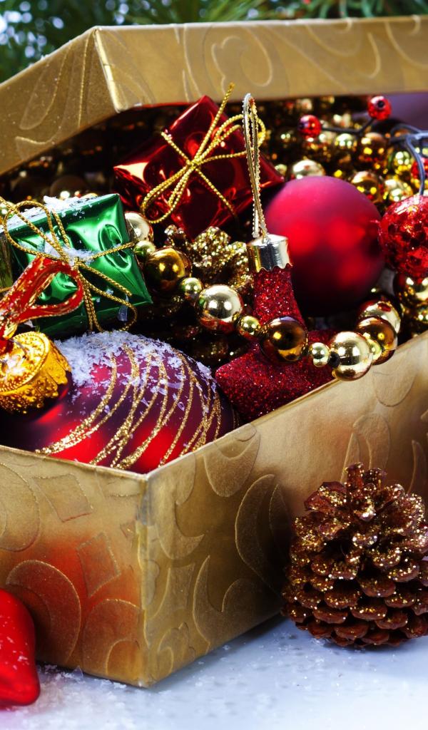 Wallpaper Snow, Christmas tree, ball, Christmas toys