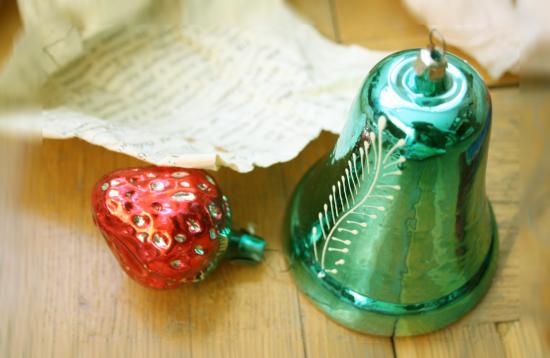 Wallpaper Bells and Christmas decorations on a white background on Christmas