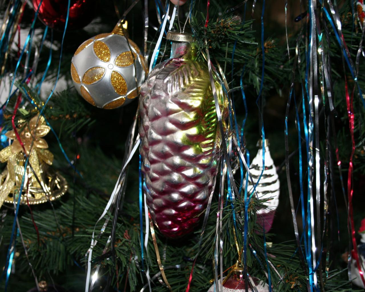 Wallpaper Arrangement of Christmas toys and needles on Christmas