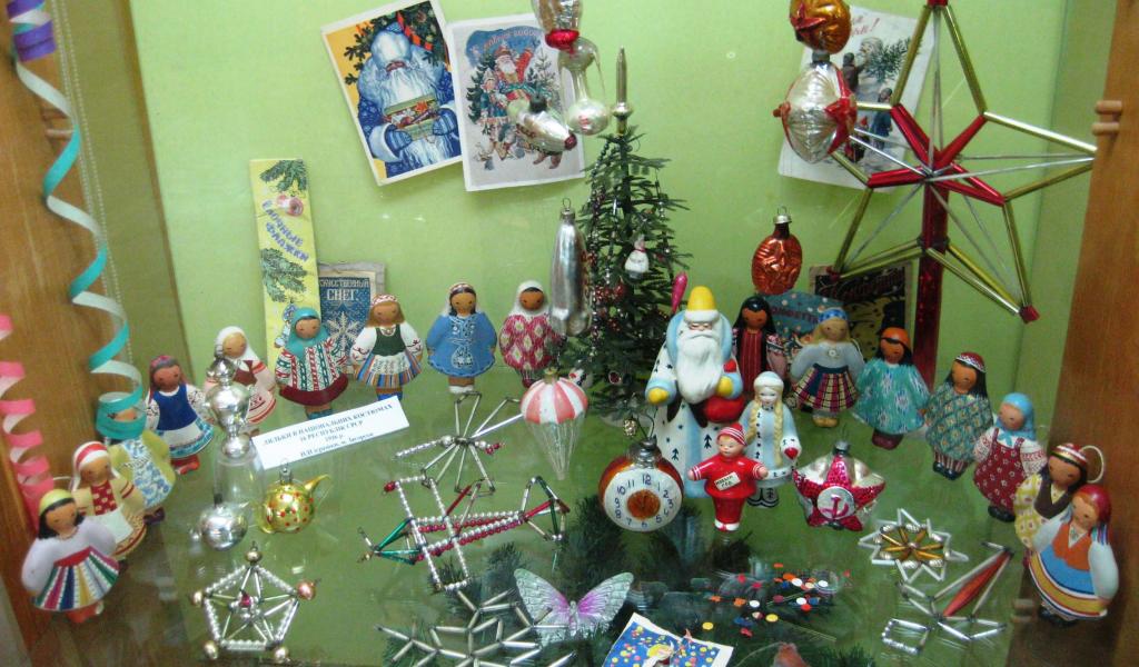 Wallpaper Fabric with a pattern of Christmas toys on Christmas