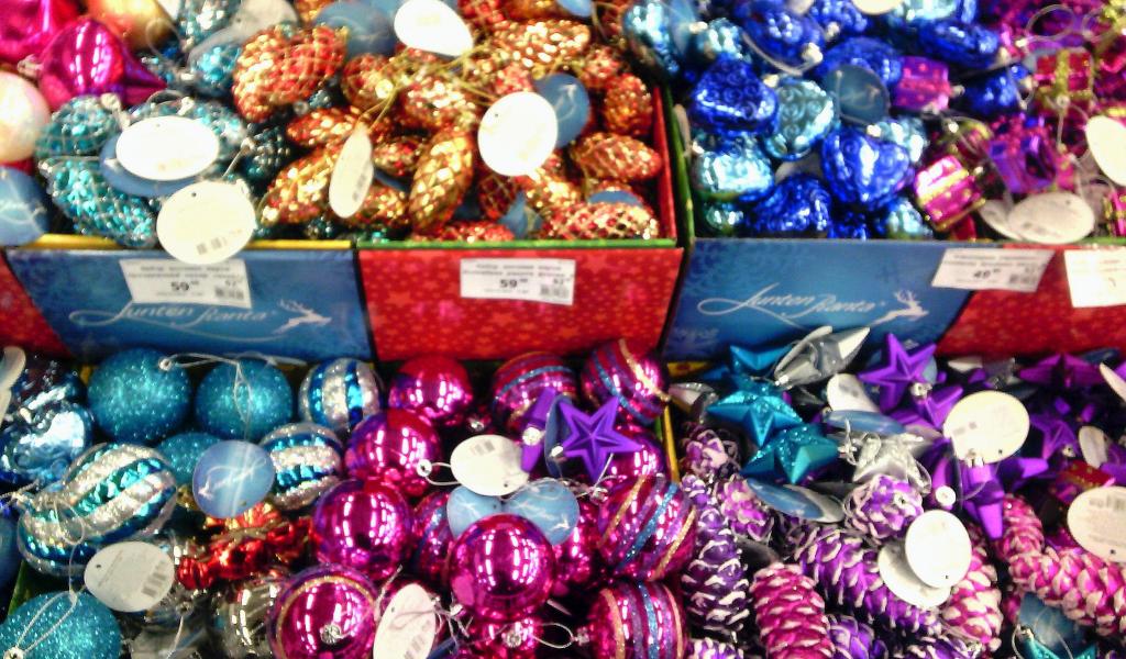 Wallpaper Arrangement of Christmas toys and needles on Christmas