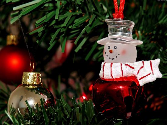 Wallpaper Beautiful Christmas tree with a variety of toys in snowy weather on Christmas