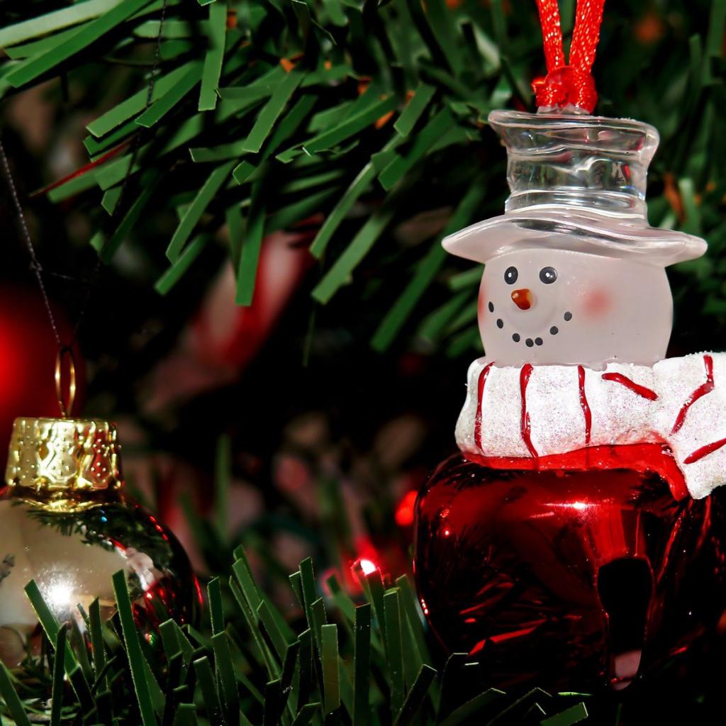 Wallpaper Beautiful Christmas tree with a variety of toys in snowy weather on Christmas