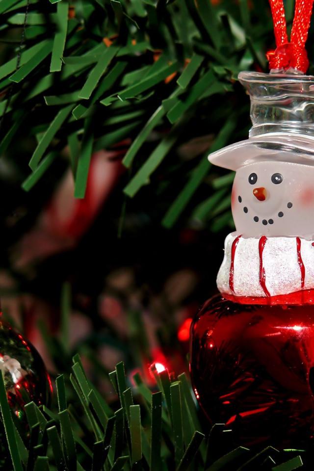Wallpaper Beautiful Christmas tree with a variety of toys in snowy weather on Christmas