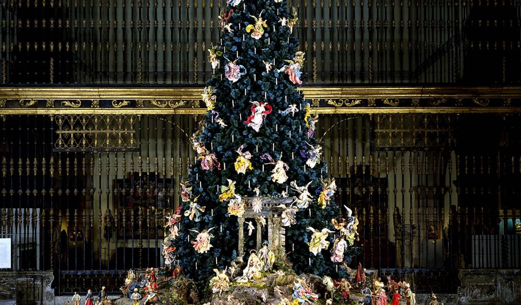 Wallpaper Decorated Christmas tree in a cozy room on Christmas