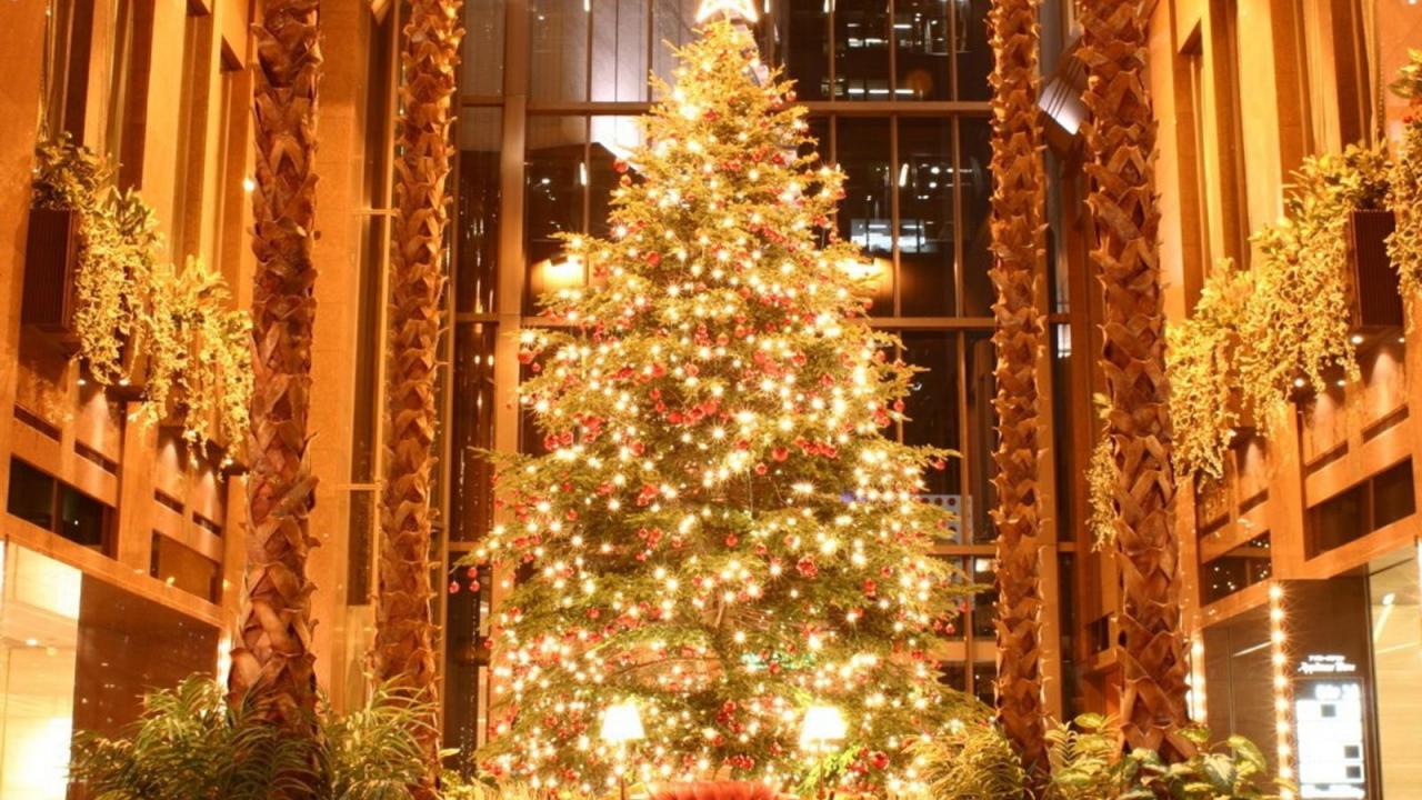 Wallpaper Beautiful Christmas tree for New Year horse