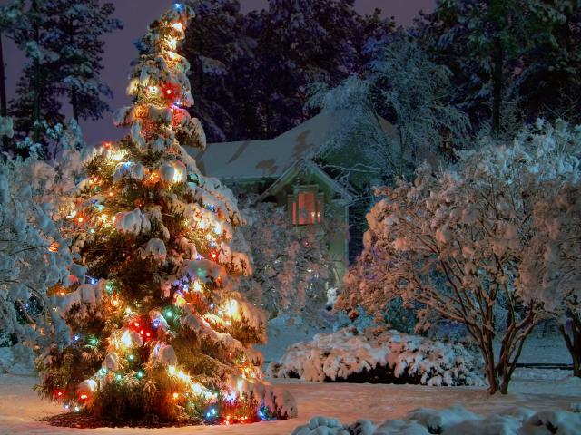 Wallpaper New year tree in night woods