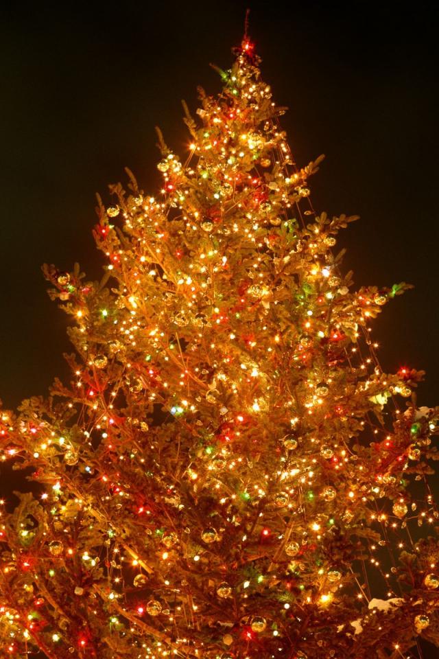 Wallpaper New Year tree in the bright lights