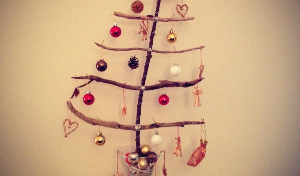 » Wallpaper New year tree made out of sticks