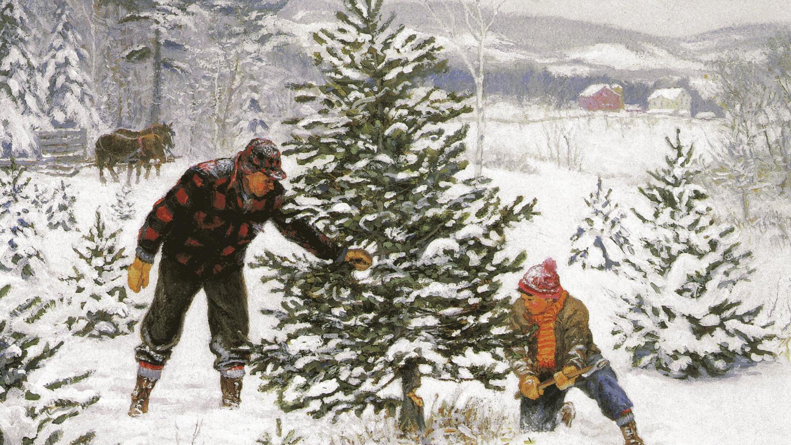 Wallpaper The Father and son new year tree