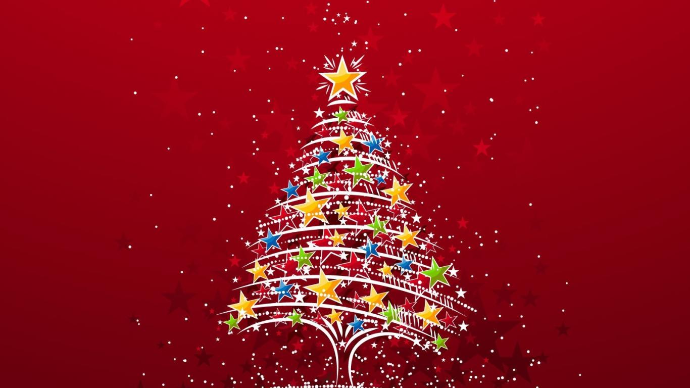 Wallpaper New year tree on the red background 2014
