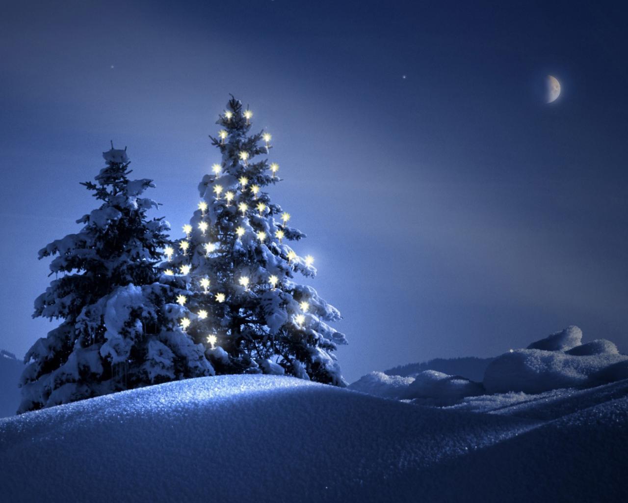 Wallpaper New year tree in the night