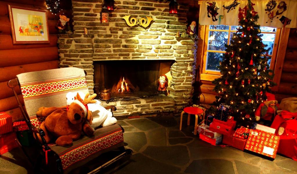 Wallpaper New year tree and the fireplace