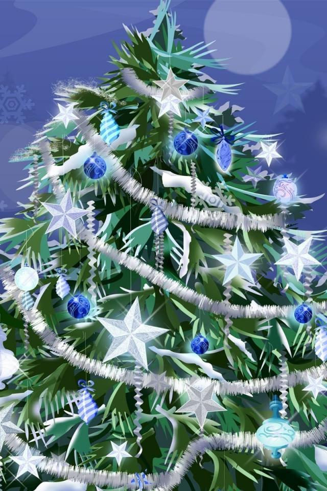 Wallpaper New year tree with white stars 2014