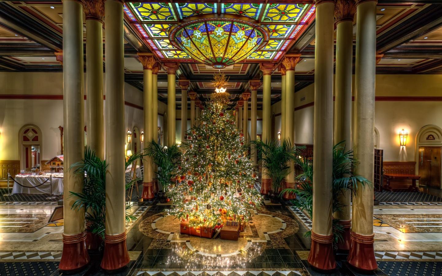 Wallpaper New Year tree in the hotel