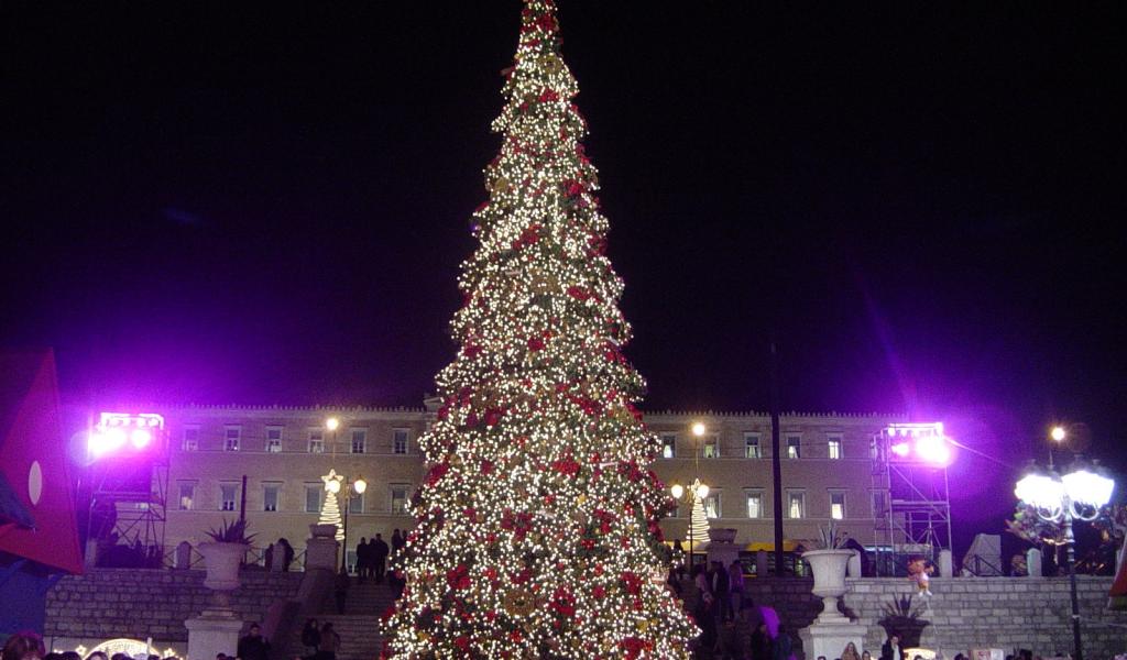 Wallpaper The beautiful New year tree in the center of the city