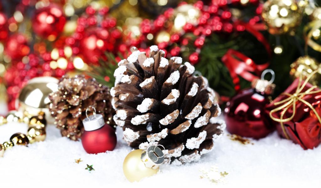 Wallpaper New Year`s toys in snow