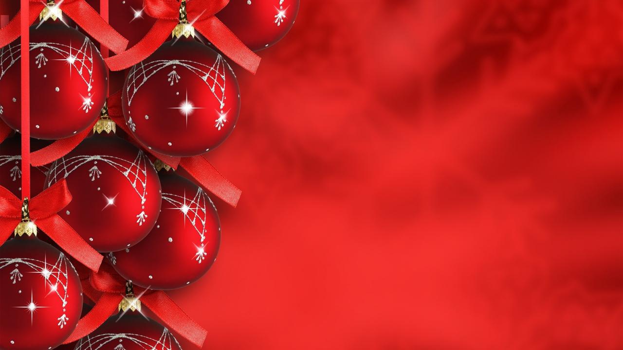 Wallpaper Beautiful Christmas tree decorations on a red background