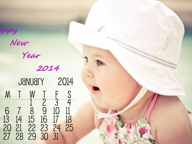 Wallpaper Happy new year 2014 calendar and a child