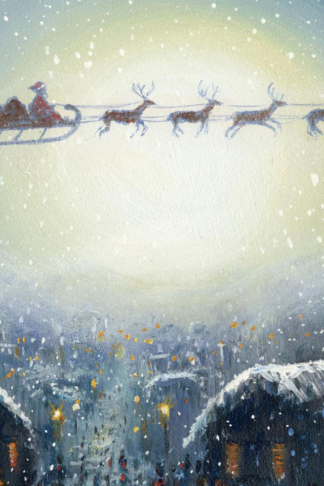 Wallpaper Santa Claus with sled, drawing
