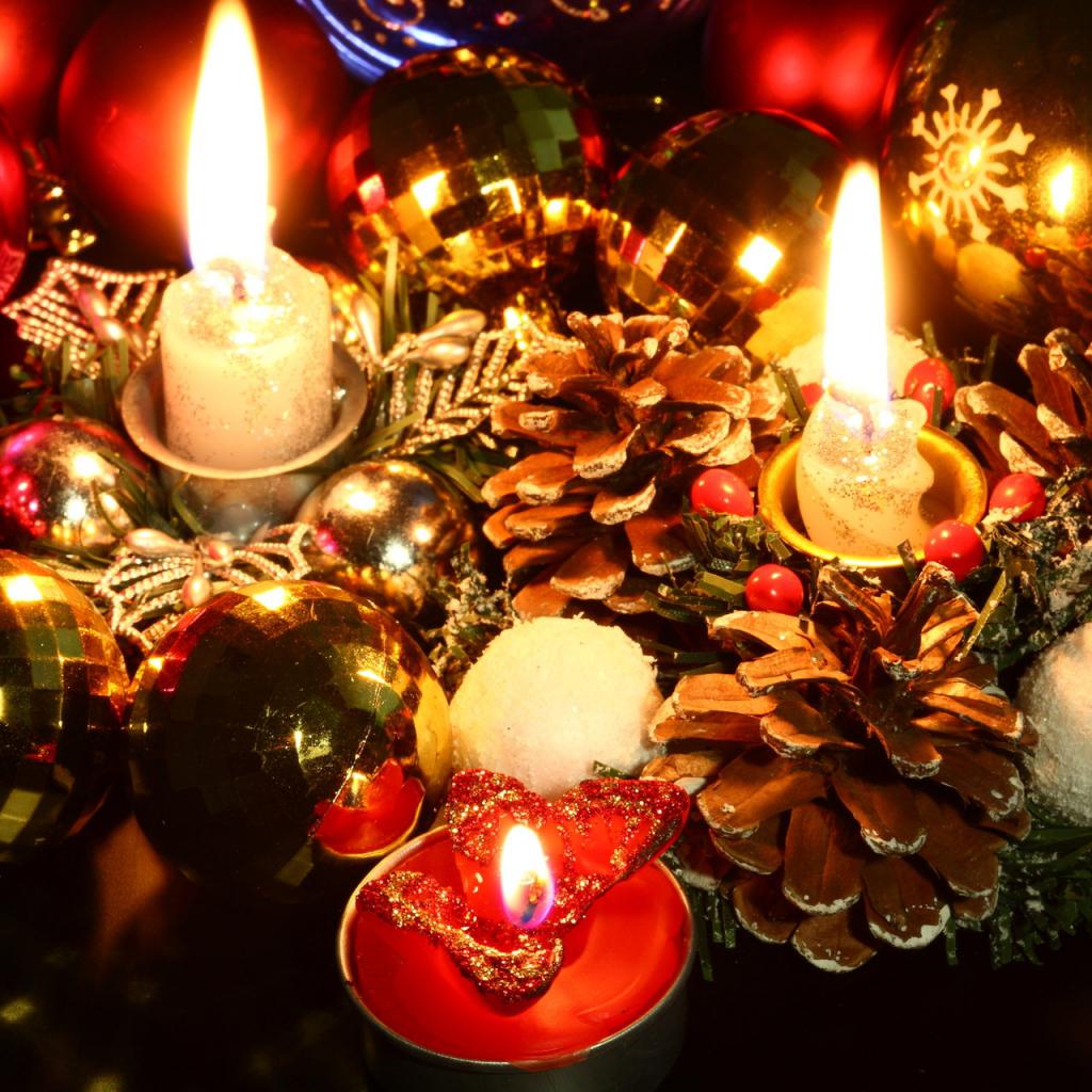 Wallpaper Candles, pine cones and Christmas tree decorations