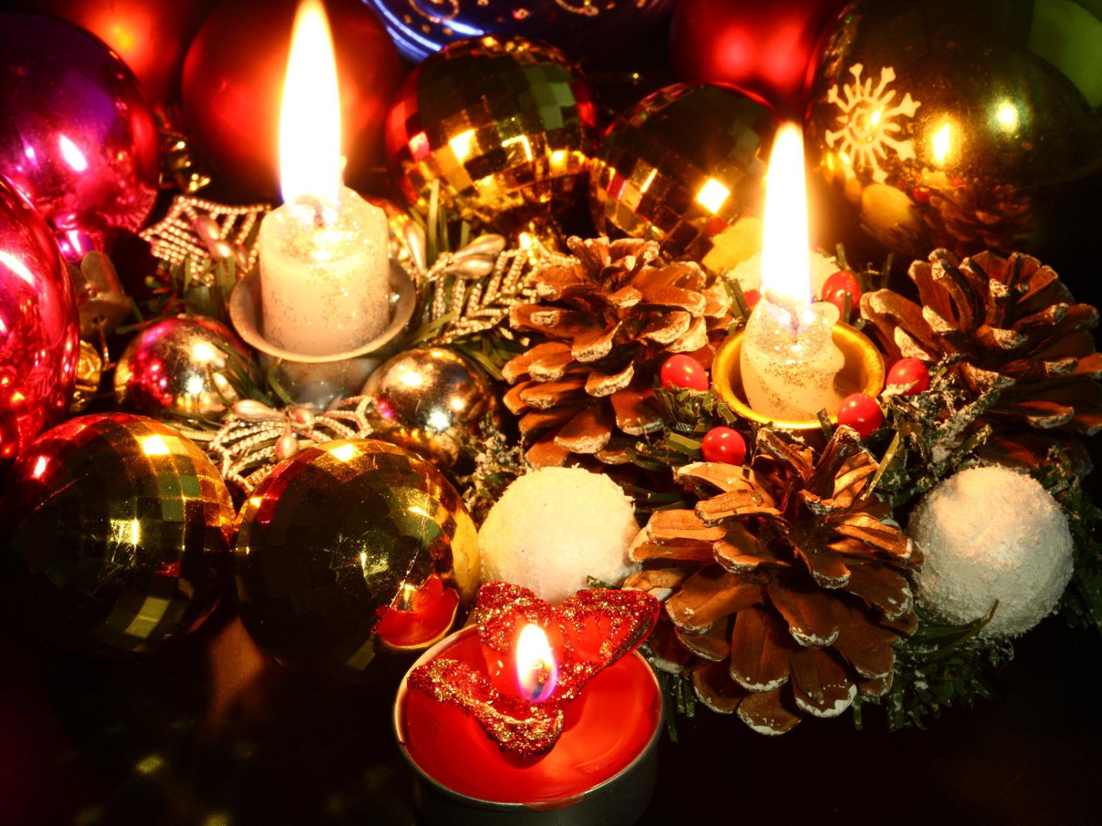 Wallpaper Candles, pine cones and Christmas tree decorations
