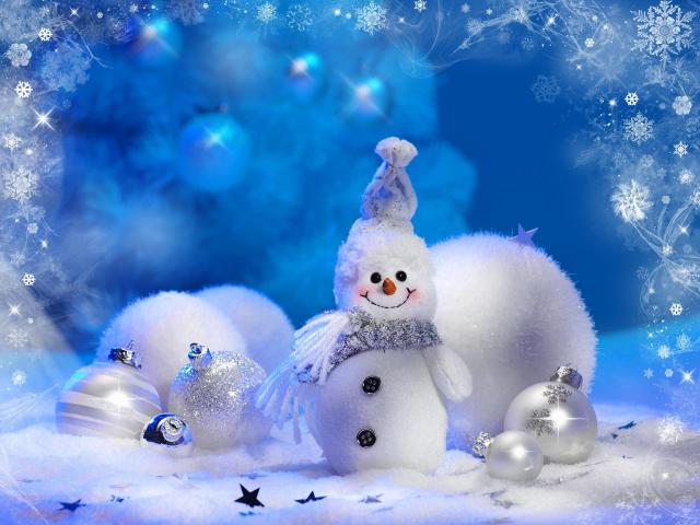 Wallpaper Cheerful snowman and Christmas tree decorations