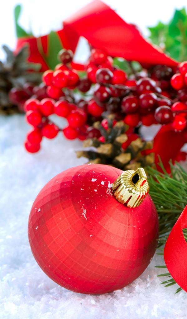 Wallpaper Beautiful Christmas tree decorations on a red background