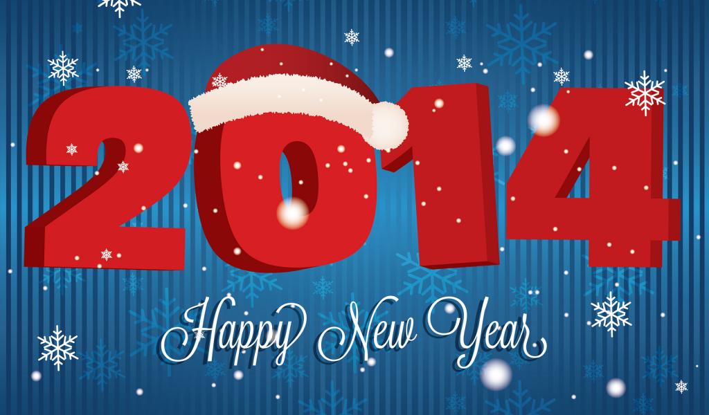 Wallpaper Happy New Year 2014 and a Santa Claus hat