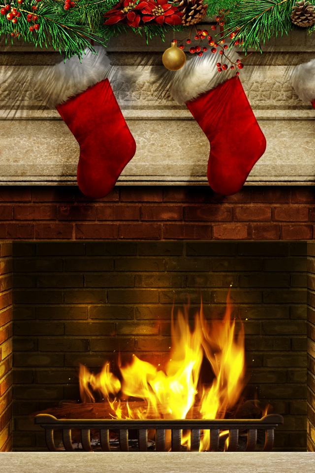 » Wallpaper New Year`s socks at a fireplace