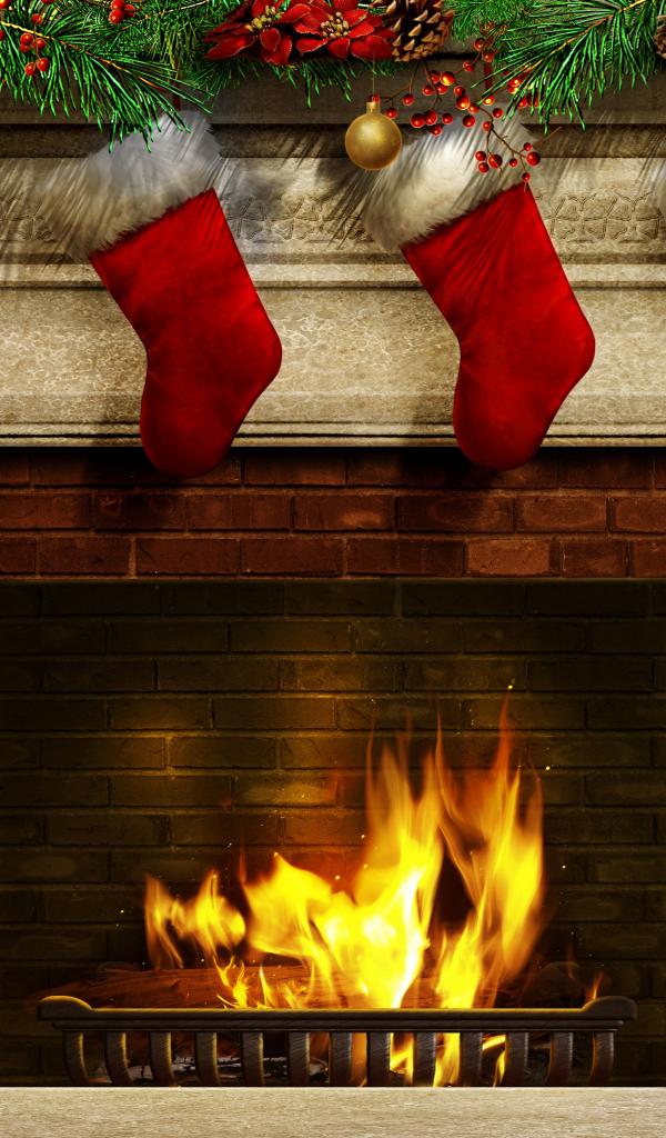 » Wallpaper New Year`s socks at a fireplace