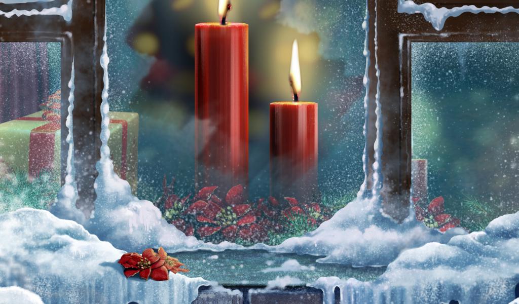 Wallpaper Burning candles outside the window on Christmas