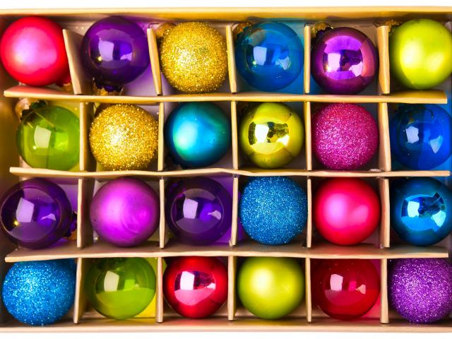 Wallpaper Balls and lights in the shape of a Christmas tree on Christmas