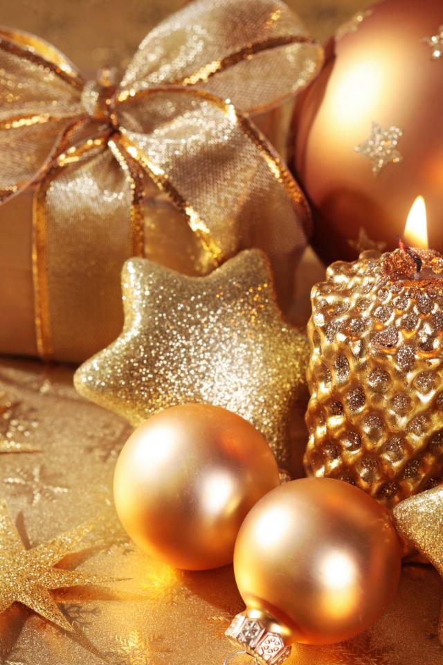Wallpaper Gift, Red ribbon, A glass of champagne, Balls, Candles , Christmas tree, Santa Claus, Christmas toys, Christmas garland