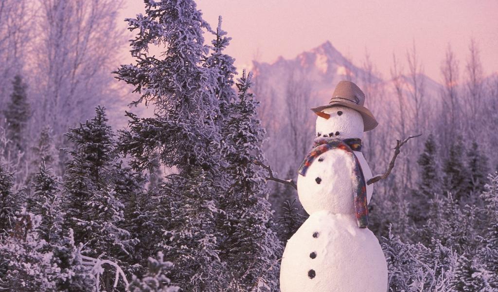 Wallpaper Snowman in the woods