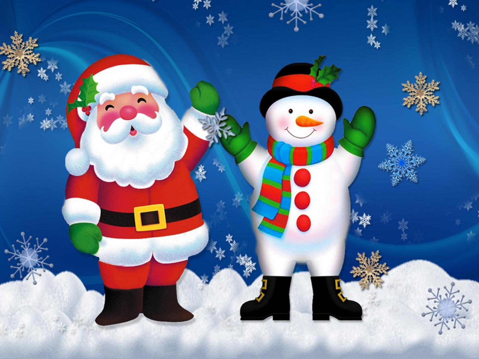 Wallpaper Snowman and Santa Claus