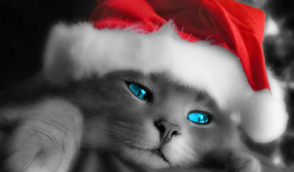 » Wallpaper Santa cat