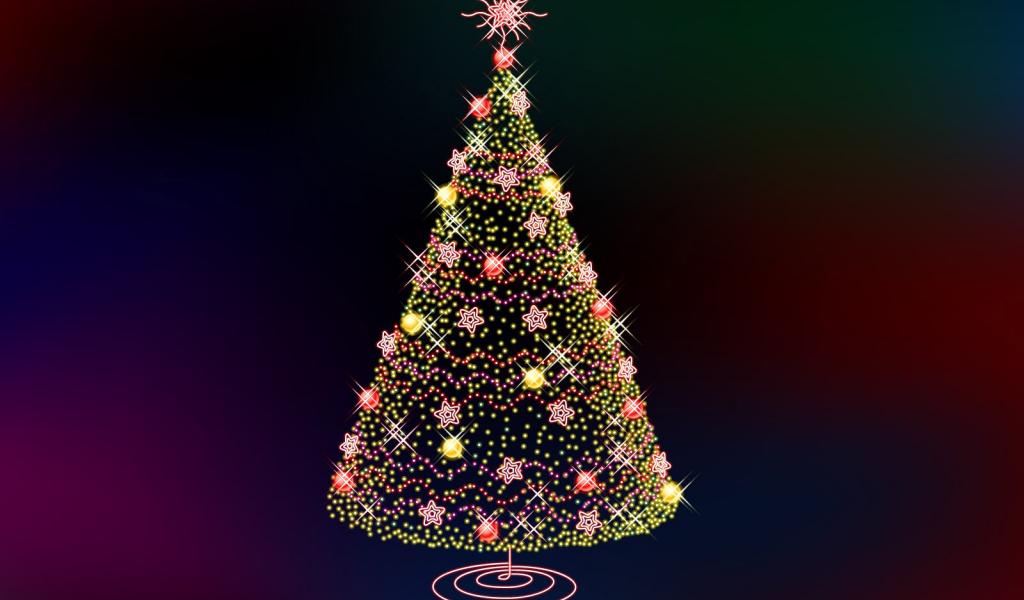 Wallpaper Red and green Christmas tree with deers on a light background on Christmas