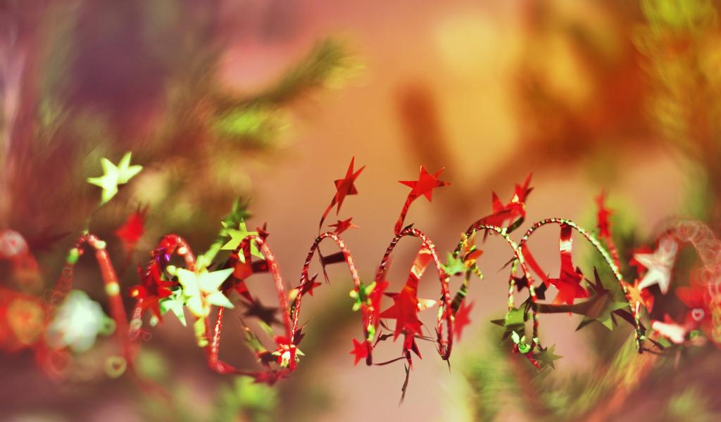 Wallpaper Burning red candles on a background of garlands on Christmas