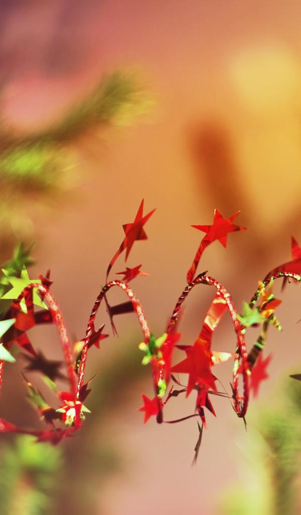 Wallpaper Burning red candles on a background of garlands on Christmas